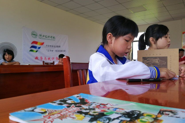 湖北文理学院志愿者江发辉说:“‘一三七读书法’是一套学习读诵国学经典的科学方法,大学期间老师就经常在课堂上带领我们一起按照这个方法朗读国学经典,所以我们把‘一三七读书法’带到‘希望家园’的‘童行者’学堂上来,让更多的儿童及青少年感受到中华民族优秀传统文化国学经典的魅力”。