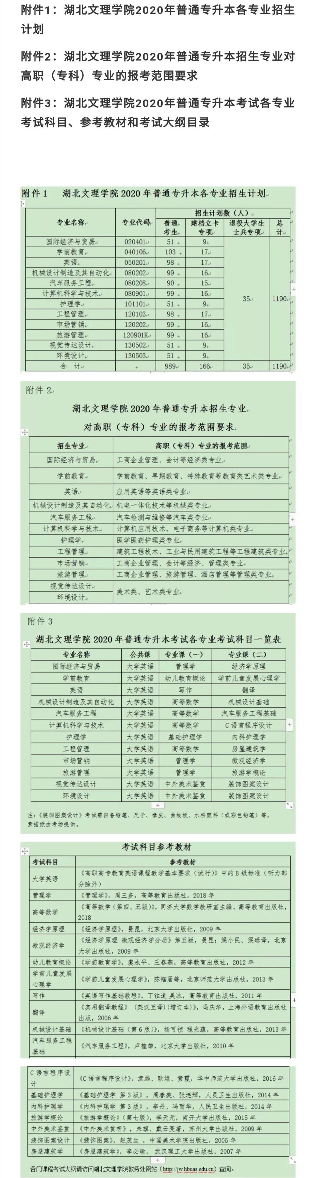 《湖北文理学院2020年普通“专升本”招生简章》,