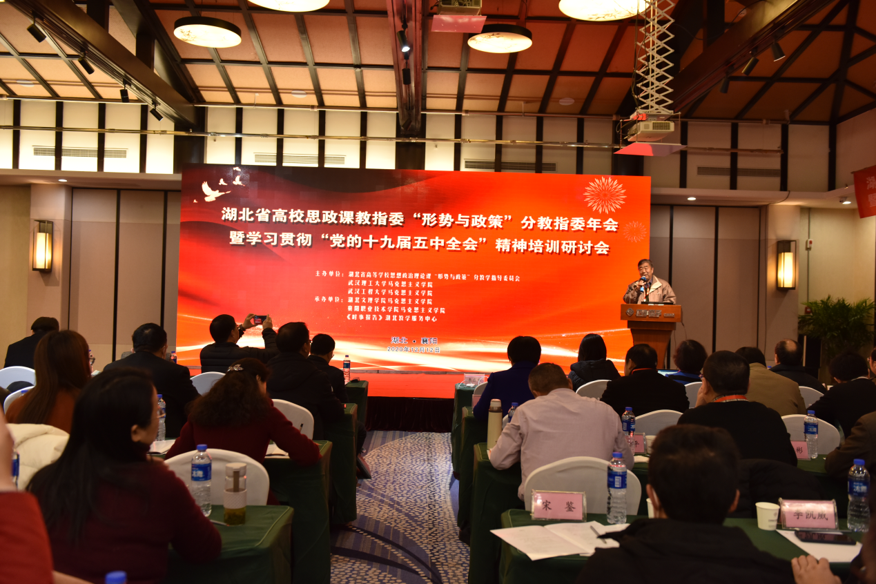 2020年12月12日,湖北省高等学校思想政治理论课“形势与政策”分教学指导委员会2020年年会暨学习贯彻“党的十九届五中全会”精神培训研讨会”在襄阳市举行。会议由湖北省高等学校思想政治理论课“形势与政策”分教学指导委员会、武汉理工大学马克思主义学院、武汉工程大学马克思主义学院主办,湖北文理学院马克思主义学院、襄阳职业技术学院马克思主义学院、《时事报告》湖北教学服务中心承办,来自全省17所高校马克思主义学院的专家学者和媒体记者共100多人出席了会议。